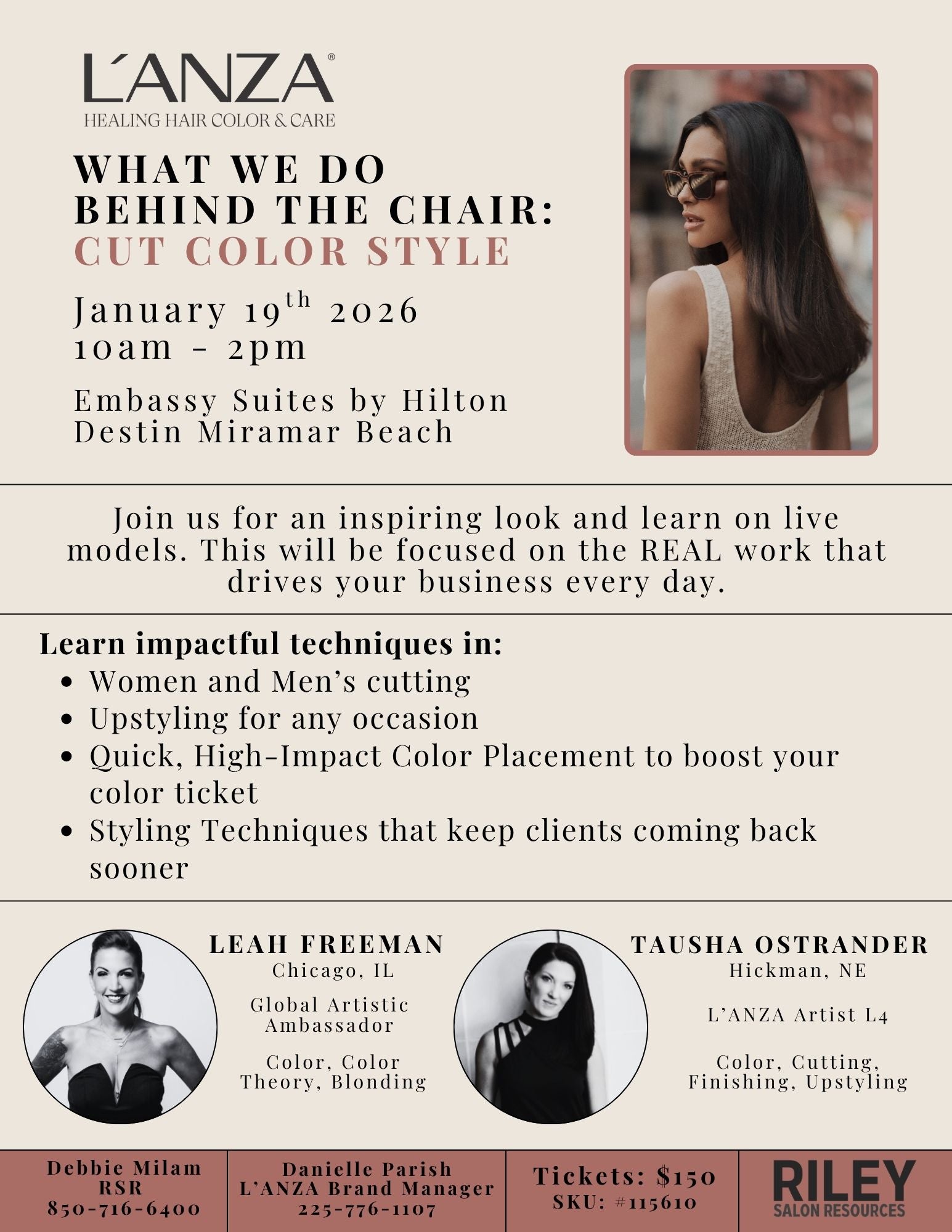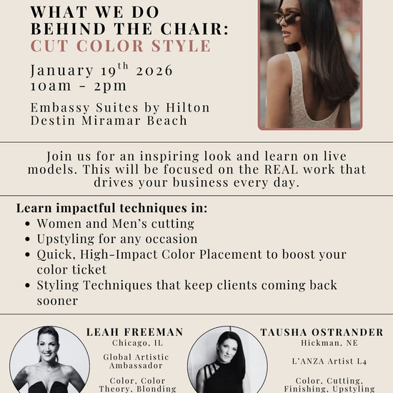 Join L’ANZA Global Artistic Ambassador Leah Freeman and L’ANZA Artist Tausha Ostrander for an inspiring hands-on look & learn experience, designed to elevate the REAL work that drives your business every day.