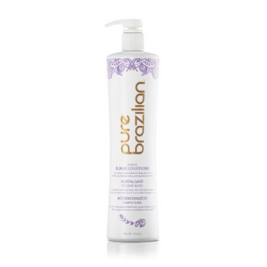 Our hydrating purple conditioner helps illuminate blonde hues, enhances tone, and neutralizes brassiness.