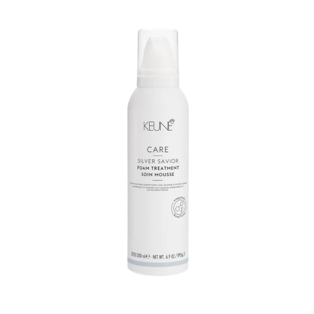 Silver Savior Foam Treatment is a leave-in conditioning mousse. Like the shampoo and conditioner, Silver Savior Foam Treatment contains brass-busting violet pigments to neutralize unwanted warm tones and nourishing Provitamin B5 to keep hair looking and feeling silky soft. The mousse also features our Bond Fuser technology.