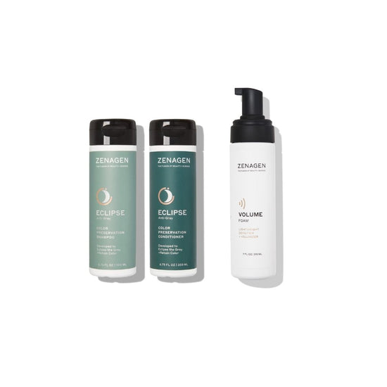 Boost your hair health and protect your color with our Eclipse Trio Box! This includes our ECLIPSE Shampoo and Conditioner to help keep your natural or professional color, along with our Volume Foam to boost your volume!