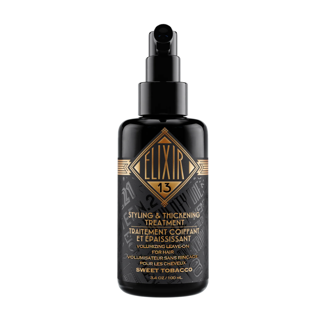 Elixir 13 is a leave-on hair & scalp treatment for fine and thinning hair. Enriched with ingredients that help strengthen and style men's hair. It protects & repairs the hair follicle and stimulates follicle cell metabolism.