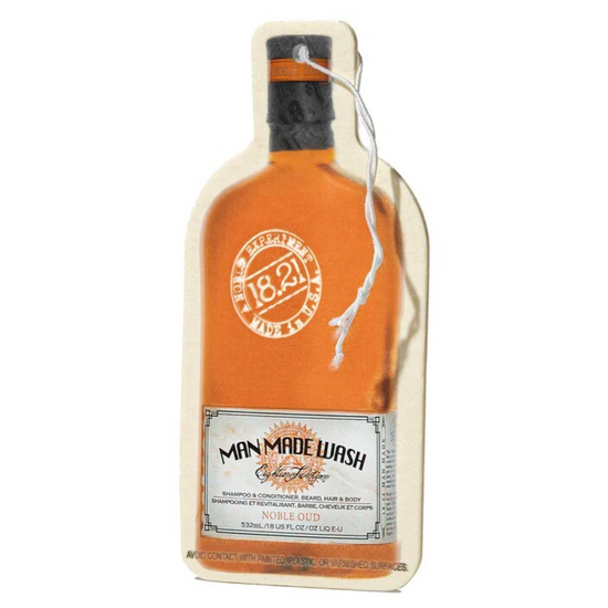 Modeled after our iconic 18.21 Man Made™ Wash bottle, this Sweet Tobacco car and air freshener releases our legendary barrel house fragrance with an admirable scent throw to complement the masculine smell of your favorite 18.21 Man Made products.